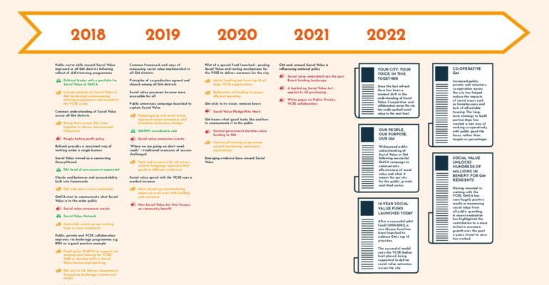 Greater Manchester Combined Authority (GMCA) adopted its first Social Value Procurement policy in 2014, placing the city region at the leading edge of social value procurement. The Greater Manchester Social Value Network (GMSVN) was created in 2015 by a group of organisations seeking to influence and shape social value policy and practice across the public, commercial and social sectors and to embed social value as a way of working.